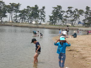 とっても浅い砂浜で 子どもの水遊びには最適なのかな?