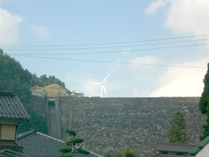 ここは 石が積み上げられたダムで 発電用の風車もクルクル回ってました