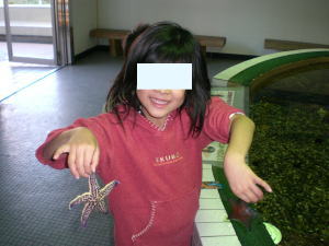 タッチプールといって ウニやヒトデ やどかりなどなどを 触ってもいいコーナーなんです