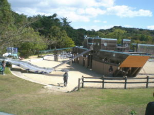 【木の遊び場】は 真ん中にドカンと この船の遊具が見えます