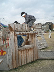 写真の遊具 今までは 開いている穴から顔をのぞかせたりするだけだったのが