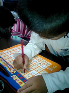 集中力のないチビなのに 一生懸命ひらがなマシーンを 長い間 いじってましたね~
