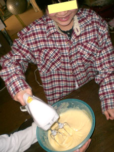 今日ケーキのスポンジをみんなで作りました