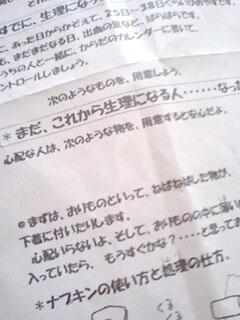 昨日 学校で 女の子だけが集められて(お決まり?) お話があったそうです