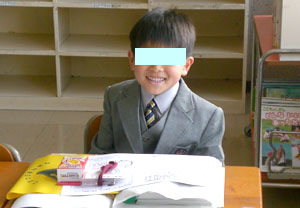 (写真をとるために)ランドセルを出してくると パジャマ姿で すぐ背負って