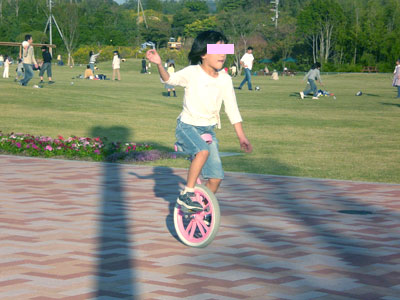 夕方 今度は まったく別の場所で チビは自転車 姫は一輪車で遊んできました