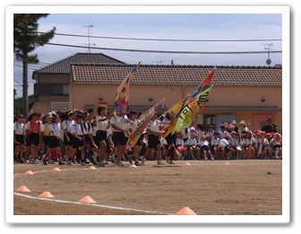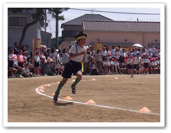 クラス対抗リレーは みんな駆け足で入ってくんのに
