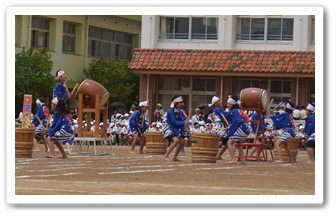 姫たちの小学校の体育大会では 毎年この樽太鼓演奏があります