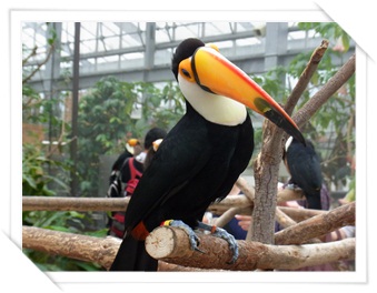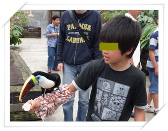 フルーツの入った餌を持って 手を伸ばすと オオハシちゃんがやってくる