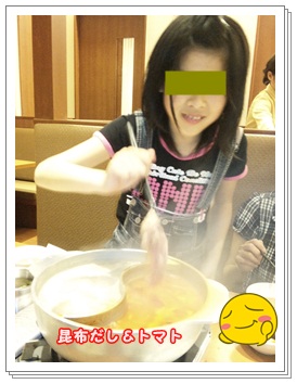 私たちは 定番の昆布とトマトだしを選択