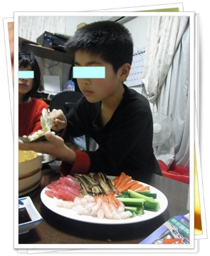 おとうには 海苔に 大量のごはんをのせて 大量の具を巻いて 食べてもぉ~てん