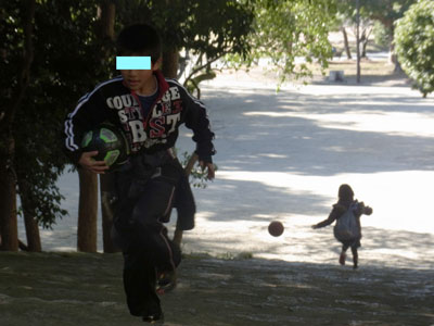 ボールを持っていってたから それを転がして それといっしょに降りるんが 楽しいんだとさ