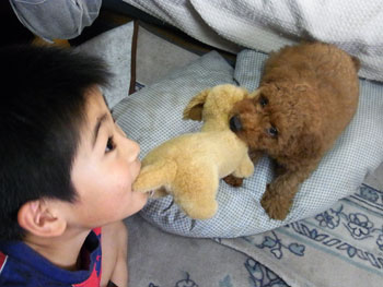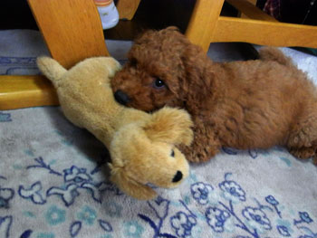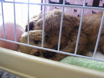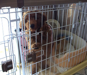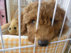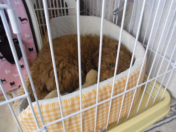本来の2か月犬らしく(?) ゲージ内で ほぼ1日を過ごしてもらう
